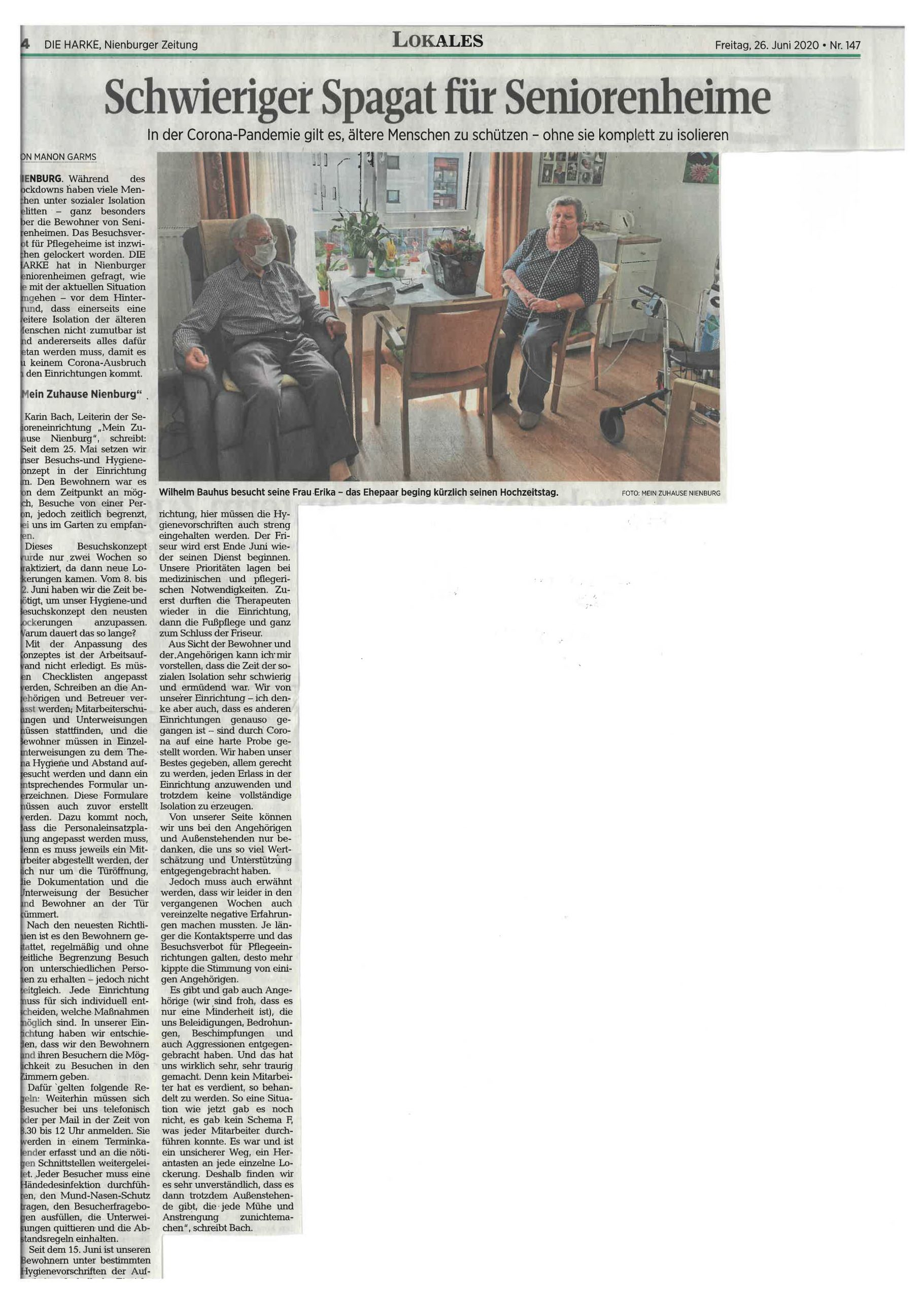 Gallerie Aktuelles, Mein Zuhause Nienburg Mein Zuhause Nienburg: Zeitungsartikel “In der Krise der Gemeinschaft helfen” Aktuelles, Mein Zuhause Nienburg